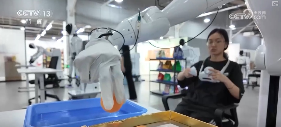 智元机器人数据采集师杨喆表示,数据采集就像大人教小朋友一样,让它这一个动作进行反复的操作,他们后台去筛选出比较优秀的数据,让它的动作保持一个连贯性。